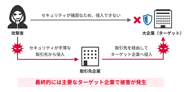 関連企業が見せたひとつのスキが、大元の企業の業務に大きな影響を与えてしまうという典型例です。