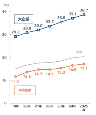 しかし、大企業では策定が進んでいる一方で、中小企業ではまだ十分に広がっていないという現状もあります(図2)。*6