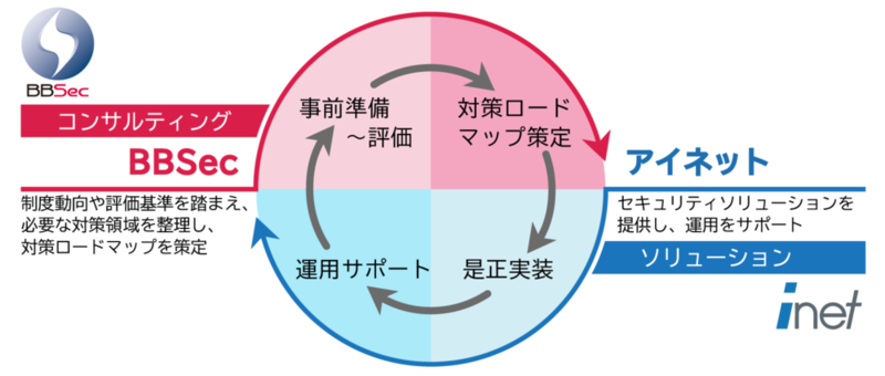 株式会社アイネット(東証プライム:コード番号9600、本社:神奈川県横浜市、代表取締役:佐伯 友道、以下「アイネット」)と株式会社ブロードバンドセキュリティ(本社:東京都新宿区、代表取締役社長:滝澤 貴志、以下「BBSec」)は、経済産業省が2026年度中に運用開始を予定している「サプライチェーン強化に向けたセキュリティ対策評価制度」(以下「本制度」)に対応するため、両社の強みを活かした事前対策支援サービス(以下「本サービス」)を協働で提供開始しましたので、お知らせいたします。