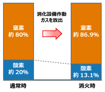 ※イナージェンガス:窒素52%、アルゴン40%、CO2(二酸化炭素)8%の混合ガス