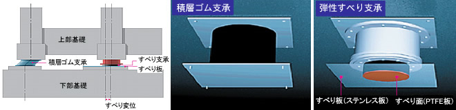 弾性すべり支承と積層ゴム支承を組み合わせた新しい免震構法
