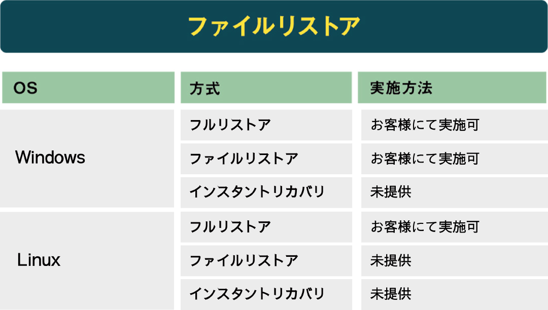 データベースサーバのバックアップは、VSSまたはVMware ToolsからAPI経由で一時的にデータベースバックアップ用ツールを導入(バックアップ完了後に削除)して取得します。